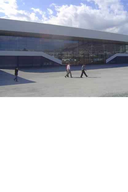 Se nos planteó la necesidad de edificar un pabellón para tres mil espectadores proyectado y construido en un tiempo máximo de siete meses, ya que debía celebrarse en él la final de la copa ASOBAL. Al estar situado frente al mar, creímos necesario abrir las vistas a él, solucionando la fachada principal con un muro cortina de vidrio. La construcción se realizo en 153 días, a pesar de que ese año fue uno de los más lluviosos de la década.