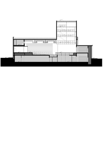 Manteniendo básicamente la volumetría original, se planteó la construcción de un cuerpo de caja escénica que emerge interiormente. Por medio de una iluminación en sus cuatro caras, además de su carácter funcional, podrá actuar de reclamo visual hacia el exterior.